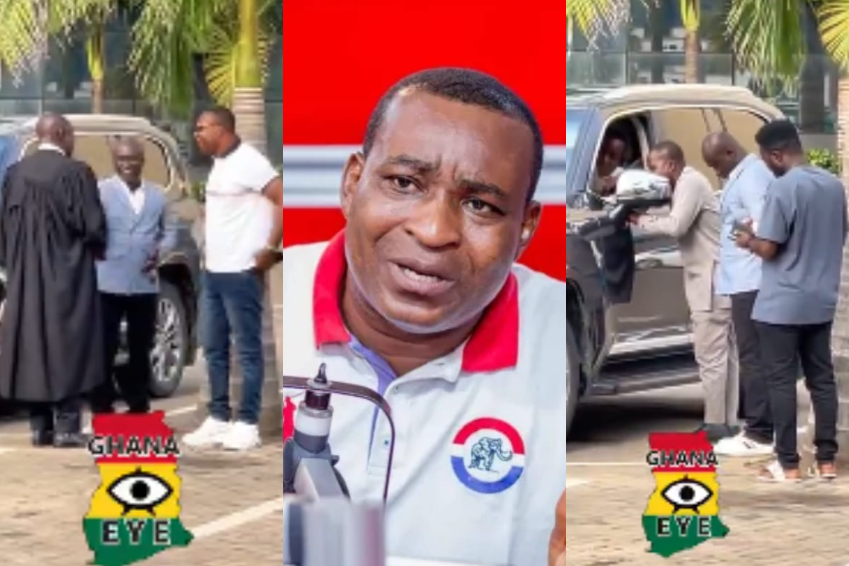 A moment was captured when a pastor was spotted praying fervently for the Ashanti Regional Chairman of the NPP, Bernard Antwi Boasiako (Chairman Wontumi), upon his arrival at court with his legal counsel. pic.twitter.com/3clv23Qmcd